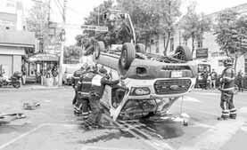 Un fuerte choque entre una ambulancia y dos vehículos particulares ocurrió en el cruce de las calles José T. Cuéllar y 5 de Febrero, en la colonia Obrera, que dejó un saldo de cuatro personas lesionadas, tres requirieron el traslado a un hospital y la unidad médica quedó volcada obstruyendo la circulación vial. De acuerdo con el reporte oficial, la ambulancia se dirigía con exceso de velocidad a atender una emergencia y al circular por el citado cruce en la alcaldía de Cuauhtémoc, se pasó el alto y fue impactada por un automóvil particular. Al recibir el golpe el conductor de la ambulancia perdió el control y chocó con una camioneta estaba