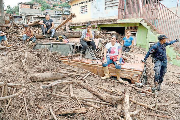 Deslave en Venezuela: 25 muertos y 52 desaparecidos ▲ Las intensas lluvias que comenzaron la tarde del sábado provocaron que varios ríos se desbordaran, arrastraran sedimentos, rocas y árboles desde lo alto de la montaña y arrasaran la localidad de Las Tejerías, un pueblo industrial a 52 kilómetros de Caracas. El presidente Nicolás Maduro decretó el área como zona de desastre y tres días de duelo. En el estado de Zulia, la cuna petrolera del país, autoridades atendían este fin de semana inundaciones en varios municipios. Foto Afp. AGENCIAS / P 25
