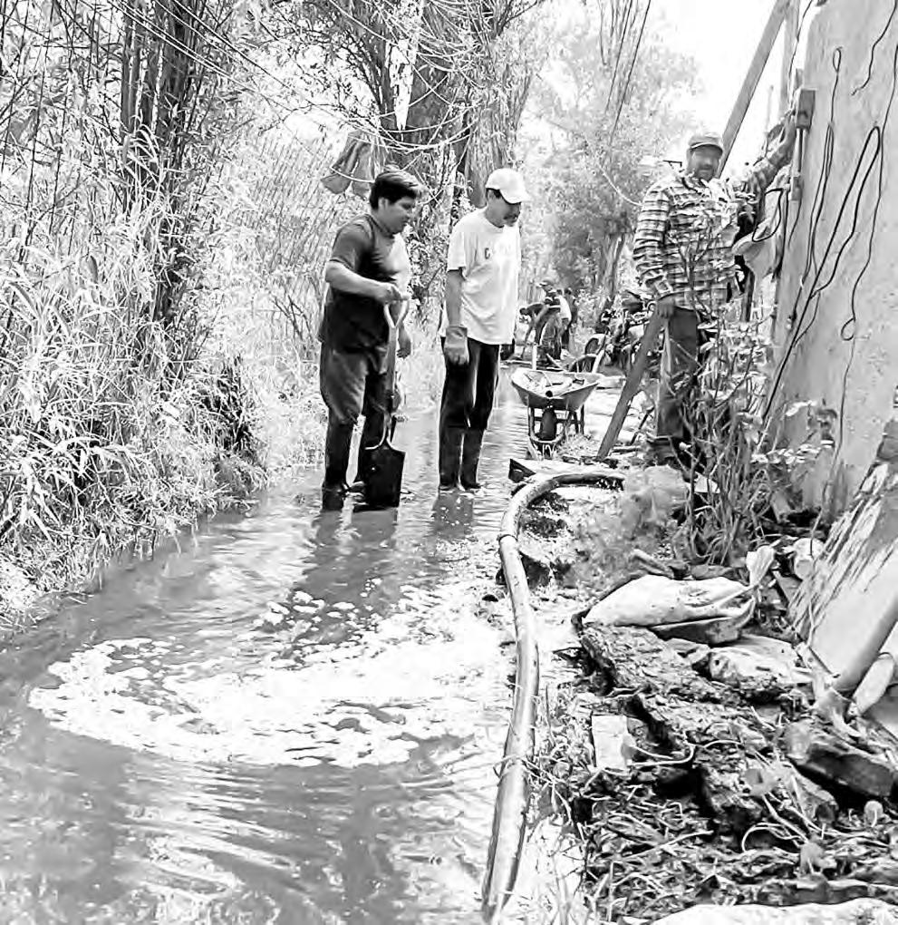 En el paraje Arboledas Colibrí se vive una situación similar por la saturación del suelo, pues ha seguido inundado el callejón que da acceso a unas 40 viviendas en un tramo de 80 metros. Ayer, media docena de vecinos laboraban para desalojar el agua hacia el canal que corre junto a la avenida Nuevo León.