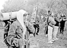 ▲ Un grupo de peregrinos poblanos toma un descanso en el Paso de Cortés, en la zona de los volcanes. Foto Cuartoscuro