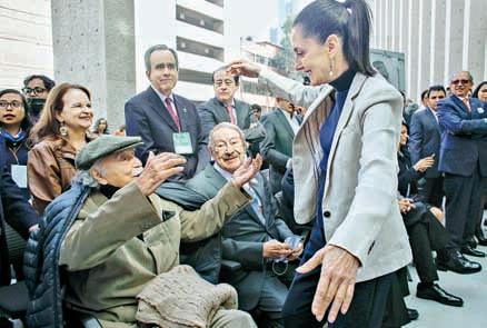 de expresión, cuyo máximo proyecto fue la fundación de La Jornada. Lo acompañan sus hijos, Inna y Emilio, y la jefa de Gobierno, Claudia Sheinbaum.