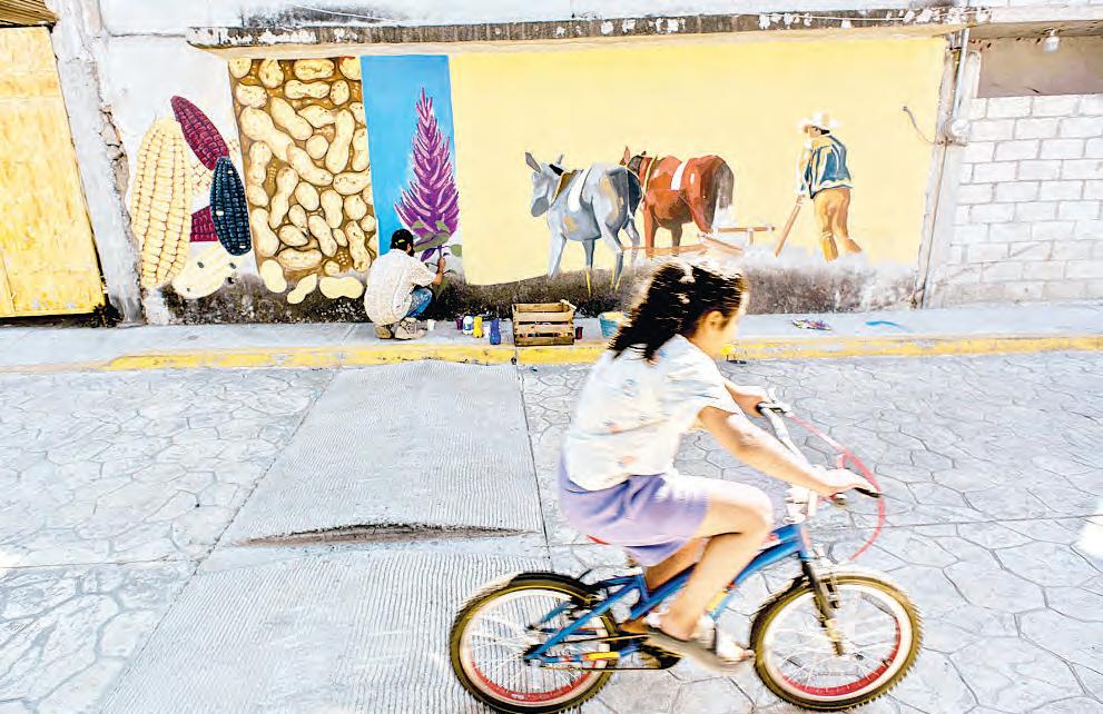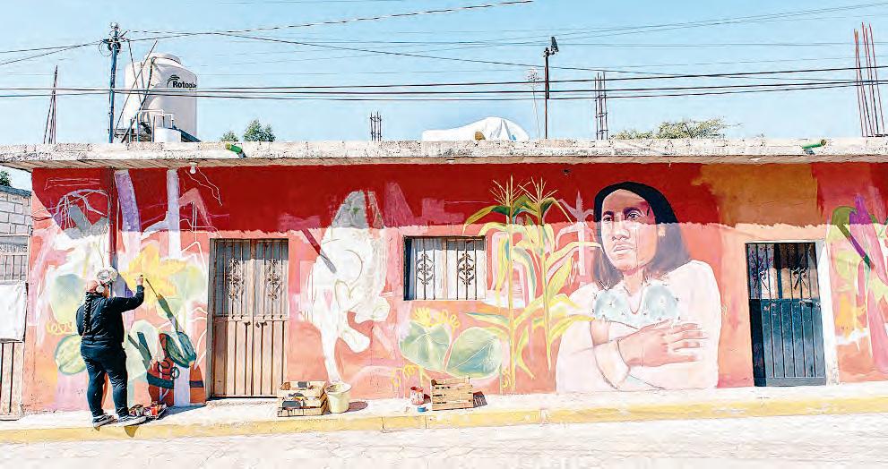 El arte mural acompaña las luchas de los pueblos t Colectivos como Tlalmino y Ollin Indigente se acercan a las comunidades y reflejan en las pinturas su identidad y las causas que defienden. Tal es el caso de Amilcingo, en Morelos, donde el rostro de Samir Flores fue plasmado en una escuela. Foto Sergio