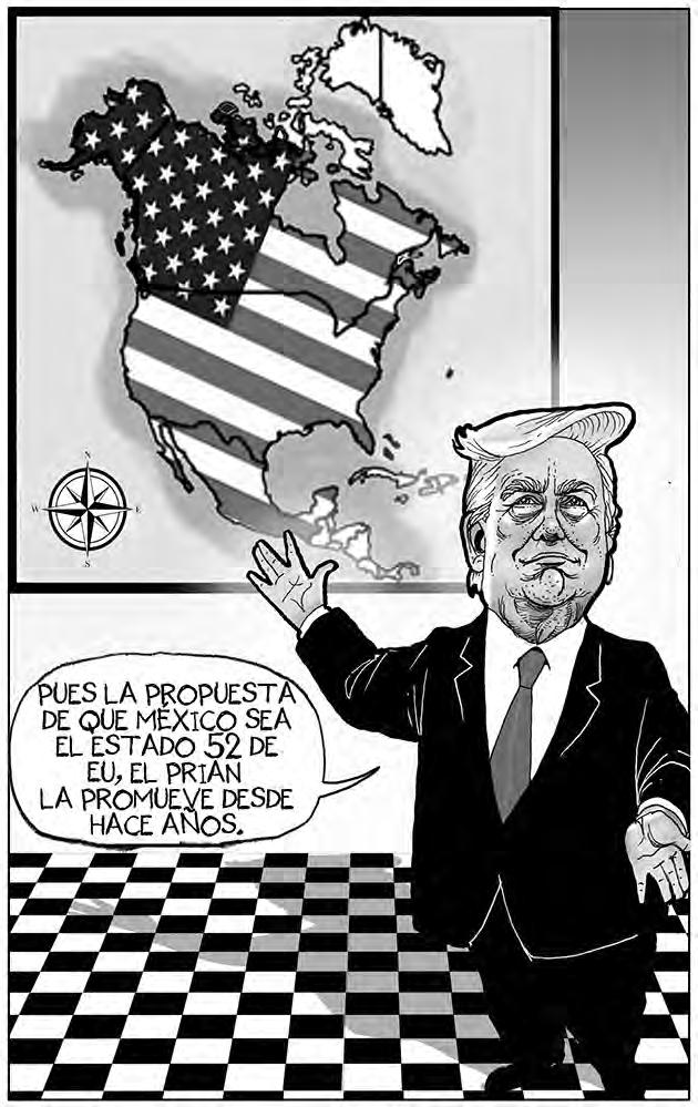 Habrá que decirle a Donald Trump que a México no le interesa que Estados Unidos sea el estado 33 de la República Mexicana, que sólo queremos que nos regresen California, Nuevo México, Arizona, Texas, Nevada, Utah y parte de Colorado y Wyoming. Iván Uranga