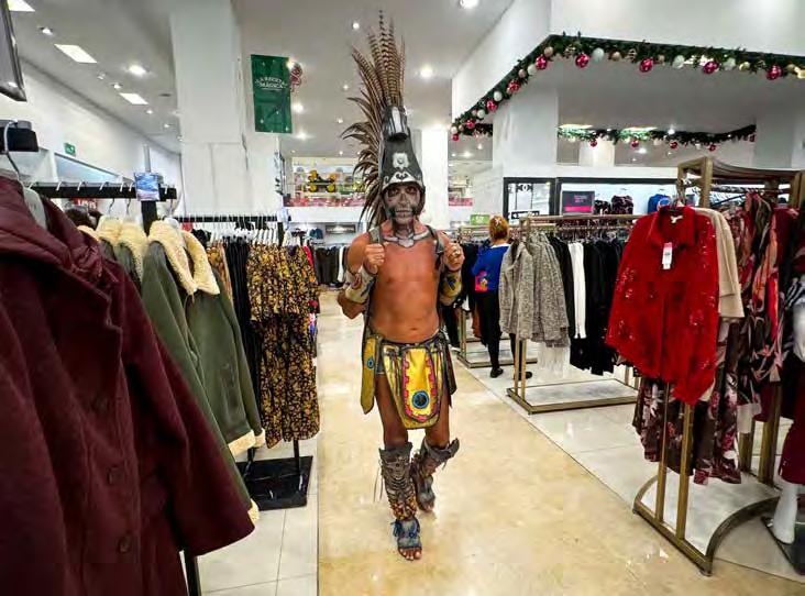 ▲ ataviado con su típico vestuario, un conchero recorre una tienda departamental en el centro Histórico de la ciudad de México. el Zócalo es un centro de reunión usual de estos grupos