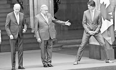 ▲ Los presidentes de México y Estados Unidos, Andrés Manuel López Obrador y Joe Biden, respectivamente, así como Justin Trudeau, primer ministro de Canadá, se dirigen al patio central de Palacio