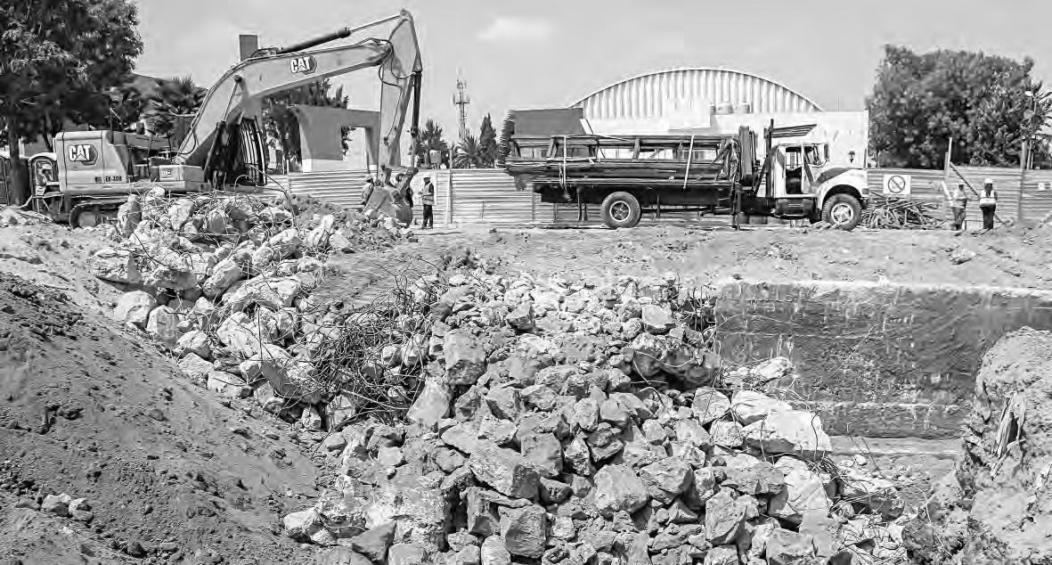 trabajos, ya que los restos permanecen más tiempo en el área de obras, lo que limita el espacio para continuar con otras actividades. Además, detallaron que se realizaron estudios previos debido a que a poca distancia del área donde se construirá la estación se localiza una falla geológica, por lo que fue necesario evaluar las