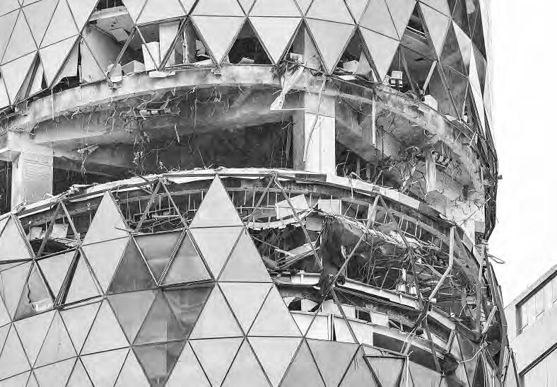 delimitada con láminas metálicas, mientras trabajadores realizan excavaciones de hasta 15 metros de profundidad, así como el retiro de escombro, debido a la demolición de una estructura subterránea, para posteriormente instalar los pilotes. Empleados mencionaron que la falta de camiones para el retiro de material provoca demoras en los
