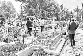 La lluvia no desanimó a familias enteras que acudieron a los panteones o esperaron un lugar para comer