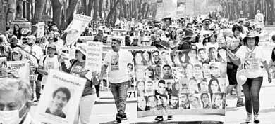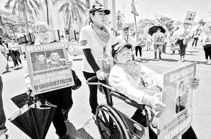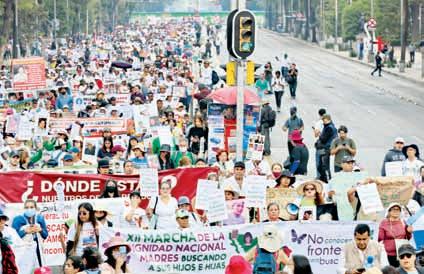▲ Con las fotos de sus hijos en las manos o en pancartas, cientos de mujeres se movilizaron este 10 de mayo del Monumento a la Madre al Ángel de la Independencia para exigir la búsqueda de