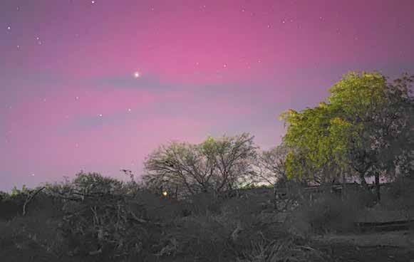 t el fenómeno llegó a la Tierra ayer (se estima que dure todo el fin de semana) y podría provocar disrupciones en redes de energía y en las comunicaciones por satélite, además de inusuales auroras boreales. el sol está acercándose al pico de un ciclo de 11 años de actividad intensificada. Los campos magnéticos asociados pueden ocasionar apagones. La imagen, en Ciudad obregón, sonora. Foto tomada de X reDacción / CienCiaS y P 27