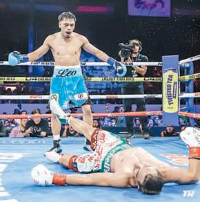 local encontró en su puño izquierdo la clave para convertirse en el nuevo campeón de la categoría. Fue la tercera derrota del mexicalense en su trayectoria (30-3-1); mientras Angelo Leo dejó su récord en 25-2-0 (con 12 nocauts).