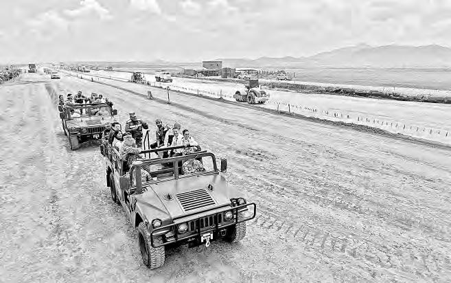 ▲ Acompañada por funcionarios y personal militar, la mandataria supervisó ayer el avance de las obras del tren, en el que se invertirán 47 mil millones de pesos Foto Presidencia