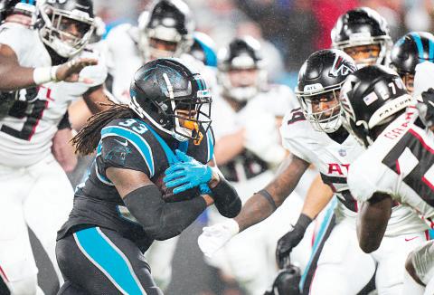 El corredor de Carolina, D'Onta Foreman, conduce el ovoide para su único touchdown contra Atlanta. Foto Ap
