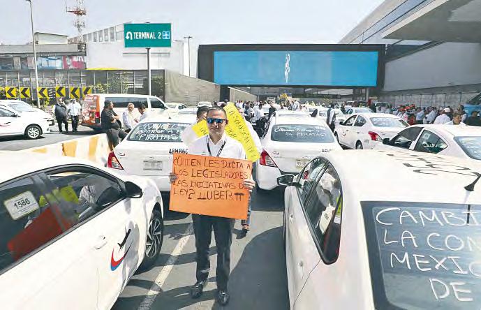 ▲ A sólo 90 días de la inauguración del Mundial, agrupaciones de choferes autorizados impidieron el paso ayer en las terminales 1 y 2 y se retiraron cuando obtuvieron el compromiso de que la