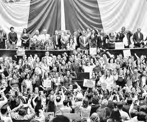 Por la bancada guinda votaron en favor 246 de sus 253 integrantes. Tres en contra: Giselle Arellano, y dos que en realidad son del Verde y están prestadas a Morena como parte del acuerdo para contar con la mayoría simple: Alejandra Chedraui y Santy Montemayor.
