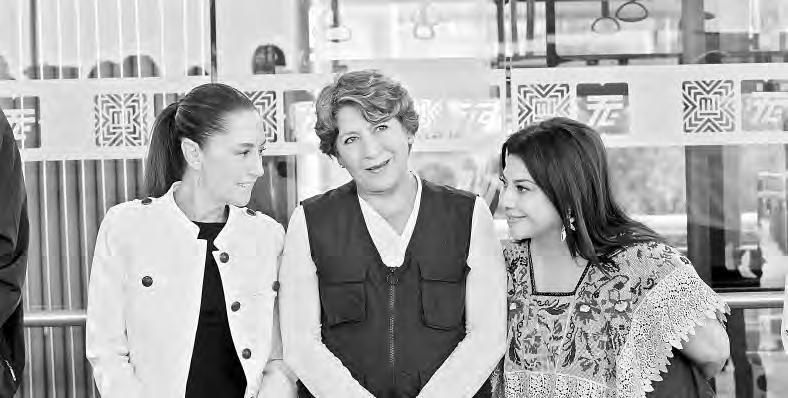 u acompañada por la jefa de Gobierno capitalino, Clara Brugada, y la gobernadora mexiquense, delfina Gómez, la presidenta Claudia sheinbaum anunció el inicio de operaciones del trolebús elevado para el 18 de mayo, que beneficiará a 2.9 millones de personas e irá de Chalco a santa martha. Foto Luis Castillo emir oliVares alonso / P 5