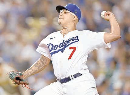 ▲ El mexicano Julio Urías durante su desempeño en la tercera entrada anoche en Los Ángeles. Foto Afp