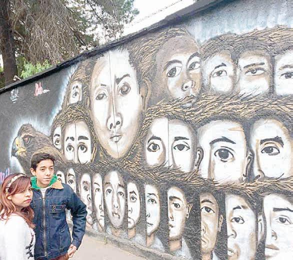 alcaldía Cuauhtémoc en meses pasados. En Azcapotzalco, cientos de pinturas que dan cuenta de la realidad social del país han sido destruidas o sufren deterioro por falta de mantenimiento, como las de la avenida San Isidro, que exigen la presentación con vida de los 43 normalistas de Ayotzinapa (imagen). Foto cortesía Pablo Moctezuma DANIEL LÓPEZ E ISRAEL CAMPOS / P 4 A 7