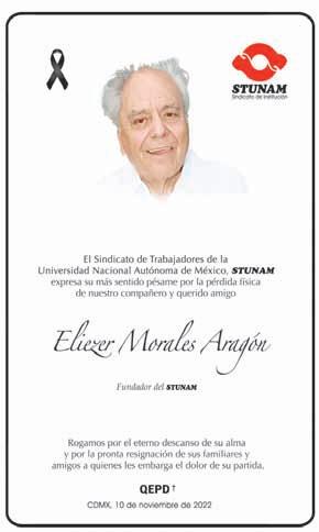 amigo Eliezer Morales, cuando nos enteramos de su fallecimiento; por fortuna, aunque él ya no esté con nosotros, plasmaremos en las páginas de nuestro ejercicio evocativo algunos de los saberes que Eliezer aportó como docente y militante sindicalista a ese movimiento académico democratizador y, para concluir, me sumo a lo señalado en este mismo espacio jornalero por José Blanco en torno a Eliezer: con la memoria de sus muchas aventuras sindicaleras y políticas.