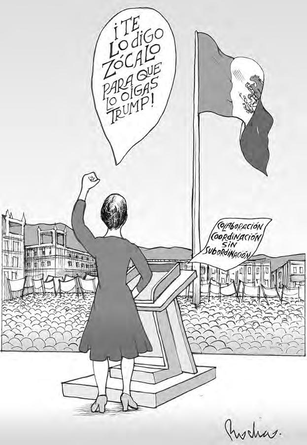 A una semana del inicio del nuevo periodo de Donald Trump en el gobierno de Estados Unidos, la presidenta Claudia Sheinbaum Pardo subrayó que en la relación con el país vecino “nos coordinamos, colaboramos, pero nunca nos subordinamos”, al tiempo que recalcó: “siempre tendremos la frente en alto. México es un país libre, independiente y soberano”.