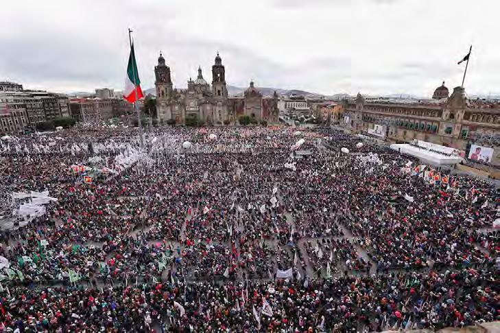 ▲ Miles de personas de varios estados se dieron cita en el Centro Histórico para presenciar el mensaje de la presidenta Claudia sheinbaum, donde hizo un balance de los logros económicos, sociales, educativos, en seguridad e infraestructura del año pasado, y en particular del arranque de su administración.