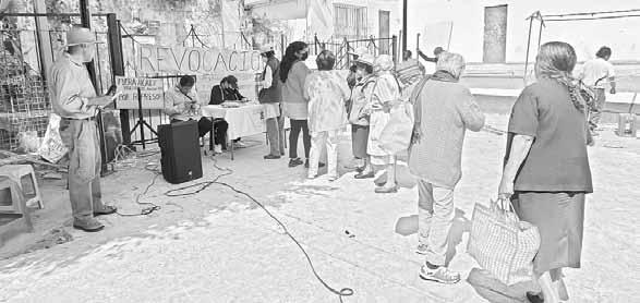 pueblo’’, expuso un participante, quien llegó en caballo. En la alcaldía Miguel Hidalgo los vecinos se dijeron ‘‘listos’’ para iniciar un proceso similar contra el panista Mauricio Tabe, una vez que el IECM les entregue el formato. Foto Luis Castillo. LAURA GÓMEZ / P 27