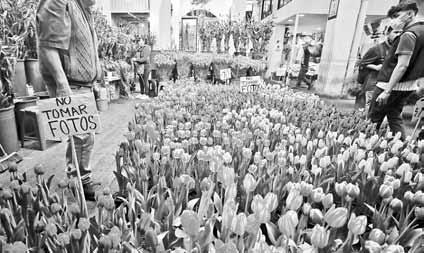 ▲ Venta de flores, en este caso tulipanes, en el mercado Jamaica, con motivo de la celebración del Día de San Valentín, también conocido como Del Amor y la Amistad. Foto Marco Peláez