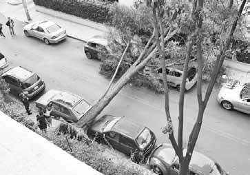 Las ráfagas del fin de semana dejaron una persona lesionada, nueve vehículos dañados, afectaciones en dos escuelas y cortes de electricidad, sobre todo en Azcapotzalco. La imagen, en calzada de la Virgen, Coyoacán. Foto María E. Rivera. LAURA GÓMEZ / P 36