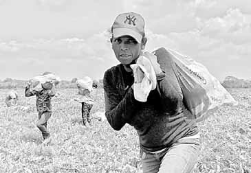 para vivir’’, relata la jornalera. Por un día recibe 400 pesos, la comida y un refresco. En esta temporada, la temperatura llega hasta 39 grados. Foto Eirinet Gómez. E. GÓMEZ / P 31