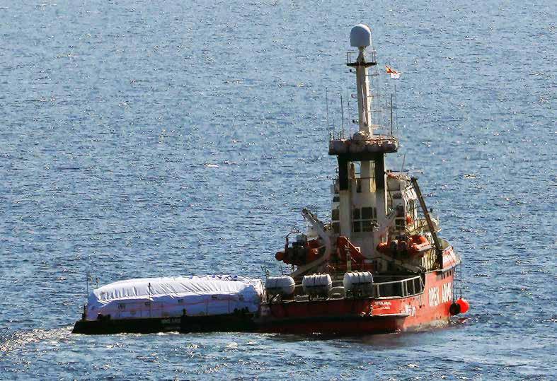▲ Luego de tres semanas de permanecer en el puerto de Lárnaca, en Chipre, finalmente pudo zarpar el barco de la organización no gubernamental española con 200 toneladas de comida y agua destinadas a mitigar las necesidades inmediatas de la población