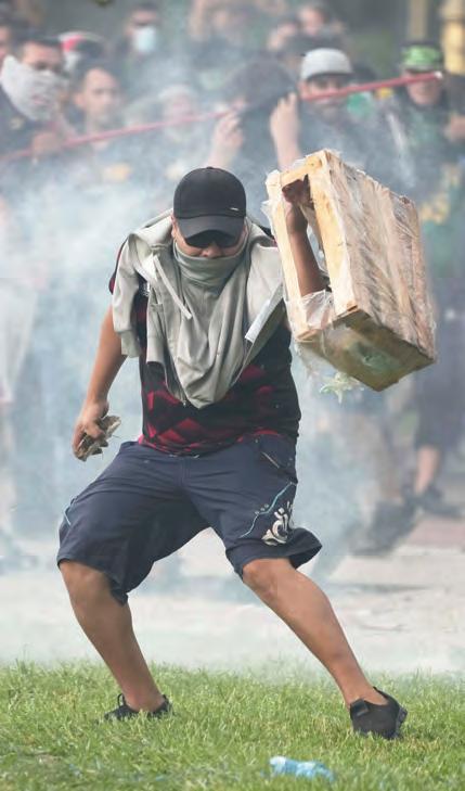 l Agentes de la policía lanzaron balas de goma, agua a presión y gas pimienta contra los manifestantes durante cuatro horas seguidas