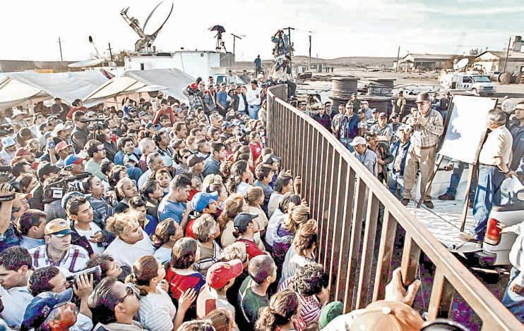 ▲ El 21 de febrero de 2006, familiares escuchaban al secretario del Trabajo, Francisco Javier Salazar. Foto Marco Peláez