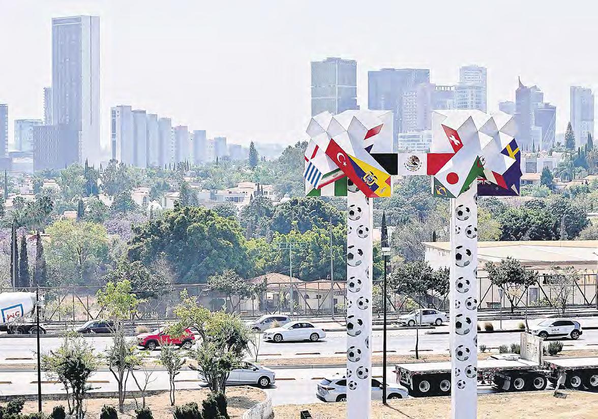 ▲ El gobierno de Zapopan presentó la intervención, con banderas y balones, de la escultura Xochicalli, Casa de la Flor, del autor mexicano Pedro Martínez Osorio, en homenaje a los países que participarán en el torneo. En tanto, las lesiones no cesan en la selección mexicana,