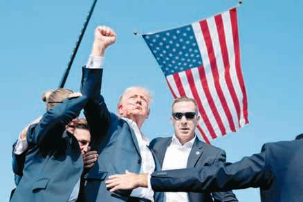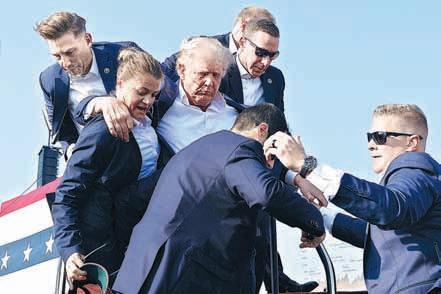 s el firme aspirante a ser candidato republicano para la presidencia fue alcanzado por una bala en un mitin en Pensilvania, tras lo cual el Servicio Secreto lo protegió. más tarde se informó que se encuentra bien. Foto Afp