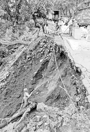 ▲ Las lluvias de la semana pasada acentuaron el deslizamiento de tierra en un tramo que delimita las alcaldías Xochimilco y Milpa Alta. Se prevé que los trabajos duren un mes. Foto La Jornada