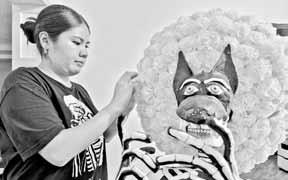 Artes y Oficios (Faro) de Tláhuac; sus hermanos, sobrinos y cuñadas se unieron a esa tarea, por lo que fundaron la Cooperativa Jaen Cartonería, que ahora se dedica a manufacturar esqueletos monumentales para la ofrenda que la familia coloca en cinco calles de su colonia por el Día de Muertos, que lleva el nombre de Calaveras gigantes de Tláhuac. Con el tiempo, se ha constituido una pequeña fiesta popular en torno a la ofrenda anual, una costumbre que tenían sus padres, originarios de Cuautla, Morelos, desde pequeños, cuenta Raymundo Medina Jaen, colaborador la empresa familiar.
