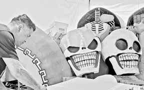 Las calaveras gigantes que surgen de los baches es una exposición a la que muchos van. Fotos Roberto García Ortiz