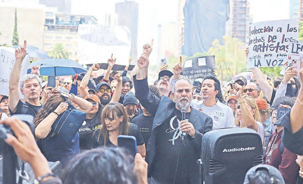 ▲ Actores de doblaje, locutores, músicos, animadores, modelos y cineastas que protestaron en el Monumento a la Revolución demandaron al Congreso de la Ciudad de México y a la Cámara de Diputados legislar una regulación de la inteligencia artificial en la