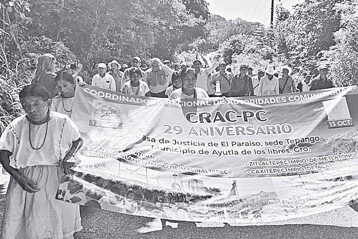 t La coordinadora regional de Autoridades comunitarias-Policía comunitaria recalcó que los pueblos originarios “fueron los que se enfrentaron a las espadas del invasor”. Acusó que la ley indígena recién aprobada “se quedó corta”, pues “no reconoce” sus “derechos plenos ni territorios”. en su 29 aniversario, resaltó que el sistema de justicia que opera en la costa chica y la Montaña de Guerrero “es eficaz y exitoso”. Foto e información sergio ocampo, corresponsal / P 30