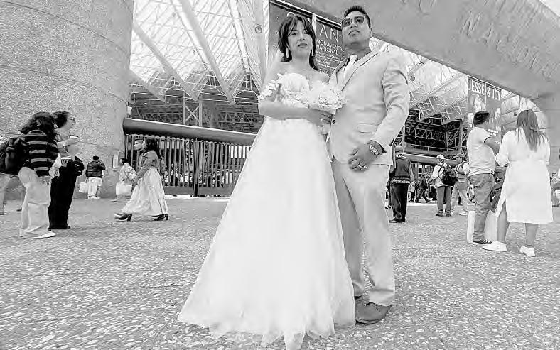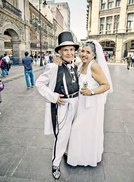 David se casó con Bertha (izquierda); tras la ceremonia, ambos se trasladaron al jardín urbano instalado en el Zócalo, donde se tomaron las fotografías del recuerdo y más tarde bailaron al ritmo del grupo Súper Show de los Vázkez, en el Salón Los Ángeles. Lo mismo hicieron muchas otras parejas junto con sus familias. Fotos Jair Cabrera Torres y Yazmín Ortega K. RUIZ, A. CRUZ, J. LAURELES Y J. XANTOMILA / P 24