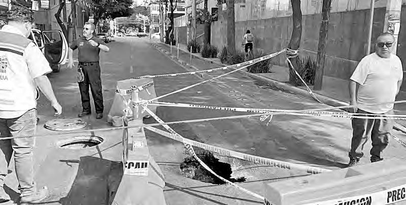 ▲ Un socavón de 5 metros de profundidad se abrió sobre Laguna de Términos y Lago Como, en la colonia Granada de la alcaldía Miguel Hidalgo. Al lugar acudió personal de Segiagua, quienes tras una inspección determinaron que un daño en la tubería de drenaje es la posible causa de la oquedad. Foto Segiagua