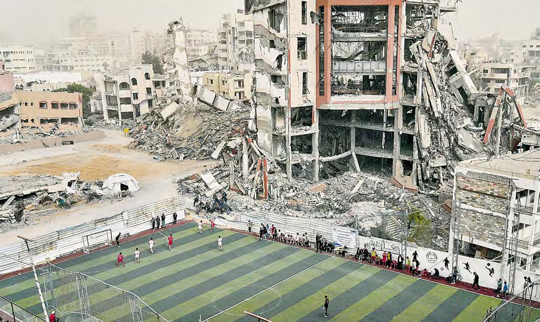 ▲ En medio de las ruinas que han dejado los ataques por aire y tierra del ejército israelí, los clubes Deportivo Gaza y Al-Ahly juegan en un campo de fubtol de nueva construcción. En tanto, en Etiopía, durante la 39 cumbre de la Unión Africana (UA), el presidente de la Autoridad Nacional Palestina, Mahmoud Abbas,