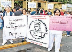En conferencia de prensa en el marco del Día Internacional de la Enfermería, Aurora Maldonado, con 27 años de servicio, señaló que estas condiciones de trabajo ocurren desde hace más de dos décadas en el nosocomio y actualmente afectan a mil 800 de sus compañeras, a quienes se les violan sus derechos establecidos en las condiciones generales de trabajo (CGT) de la Secretaría de Salud.