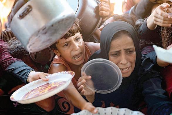 los trabajos de construcción de un nuevo asentamiento en territorios palestinos ocupados a pesar de que esto se considera ilegal de acuerdo con el derecho internacional. En la imagen, habitantes de Beit Lahia, en el norte de Gaza, claman por alimentos. Foto Afp AGENCIAS / P 24