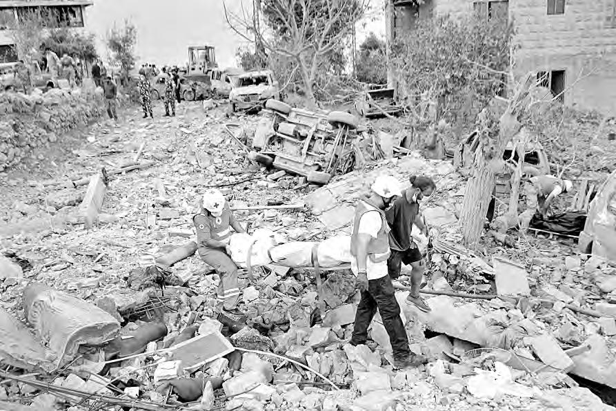 p Israel bombardeó por primera vez el norte de Líbano, la localidad de aito, de mayoría cristiana, con saldo de 21 personas muertas. La imagen, en el sur del país. Foto afp