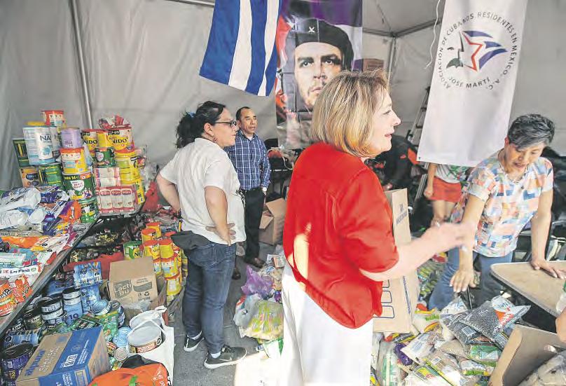 ▲ Miembros del colectivo Va por Cuba y la Asociación de Cubanos Residentes en México José Martí recibieron ayer en el Zócalo capitalino toneladas de productos para enviar a la isla. Foto Cristina Rodríguez