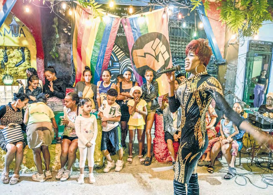 Poco después, metros adelante, dos chicas trans afrocubanas, comienzan a escenificar un show para su comunidad. Una lleva un escotado vestido gris y su pelo teñido de rubio. La otra, un traje negro con adornos dorados, y el cabello rojo corto. El espectáculo no es para el turismo. En el callejón, hay apenas dos o tres extranjeros.