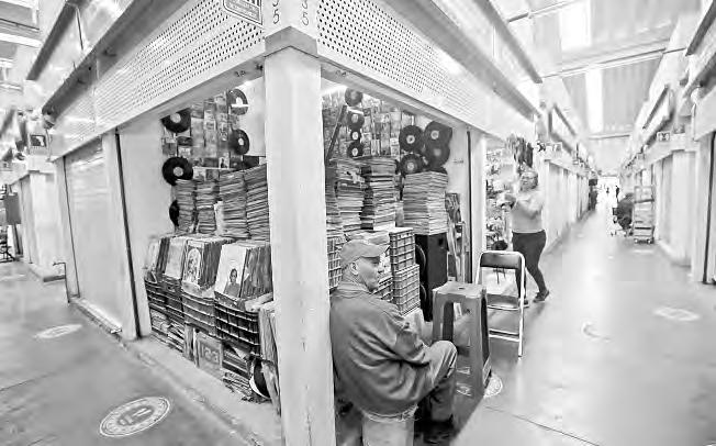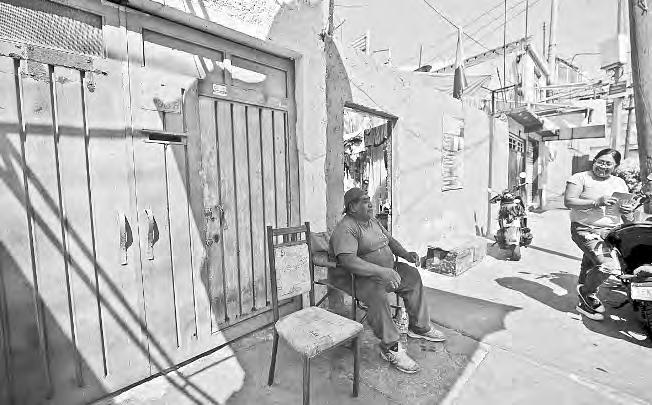 ▲ La avenida Río Churubusco (1955), los primeros habitantes de la colonia con una pancarta (1951) y el canal de río Churubusco (1945). Fototeca Nacional Colección Archivo Casasola https://mediateca. inah.gob.mx/repositorio/islandora/object/fotografia%3A112986 https://mediateca.inah.gob.mx/repositorio/islandora/object/ fotografia%3A226195 https://mediateca.inah.gob.mx/repositorio/ islandora/object/fotografia%3A110376. El mercado Río Frío hoy y sus habitantes en las estrechas calles. Fotos Yazmín Ortega Cortes