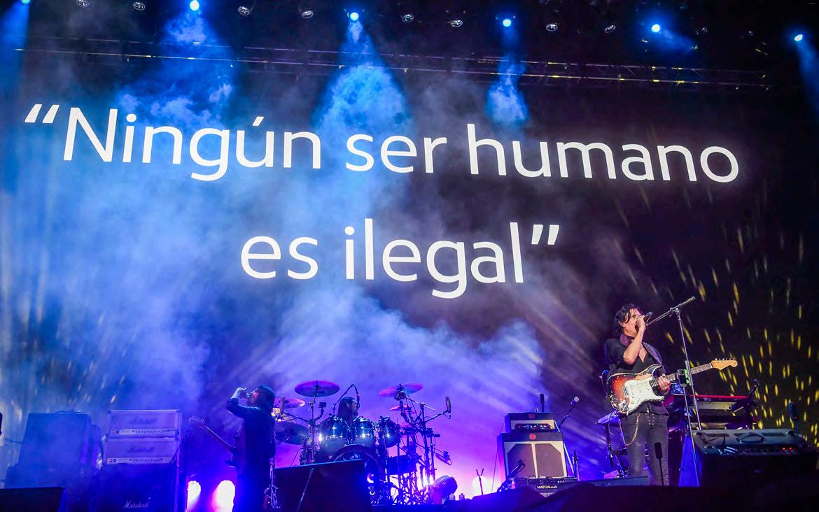 s En el festejo por los 25 años del Vive Latino este sábado, Caifanes convocó a un gran ritual en el cual alzó la voz y clamó: “Ningún ser humano es ilegal”. Otra agrupación que abarrotó el Estadio GNP fue El Gran Silencio. La jornada se prolongó hasta las dos de la madrugada.