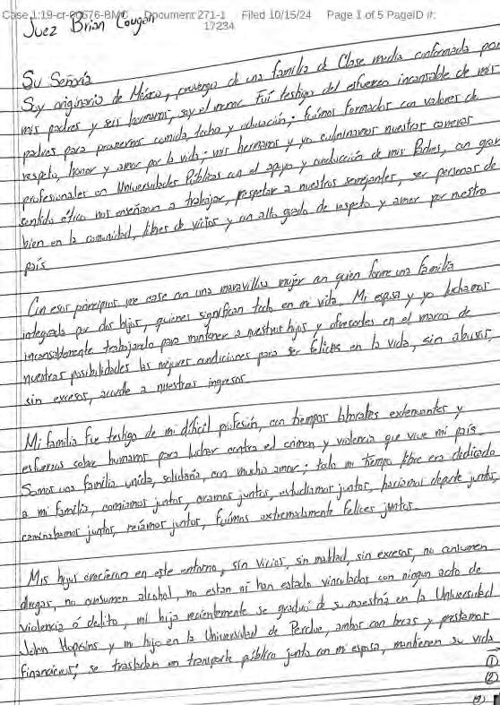 ● En una carta, insiste en que no tuvo vínculos con narcos y que es “hombre de bien”; los fiscales solicitan que le dé cadena perpetua